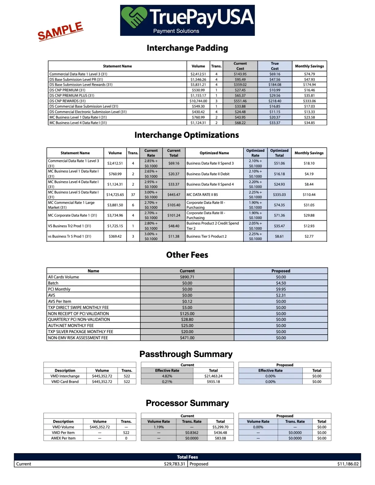 We provide a comprehensive breakdown of your processing costs with clear, actionable insights
